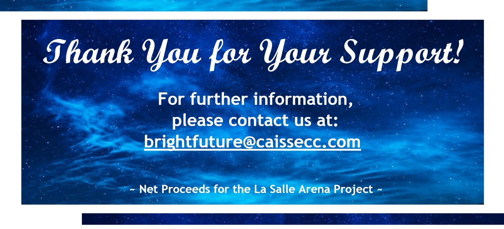 Join us for an unforgettable night of elegance, excitement and generosity at A Bright Future Fundraising Gala! This spectacular evening will blend the glamour of a formal gala with fun and energy of interactive games and live entertainment – all in support for the La Salle Arena Project.